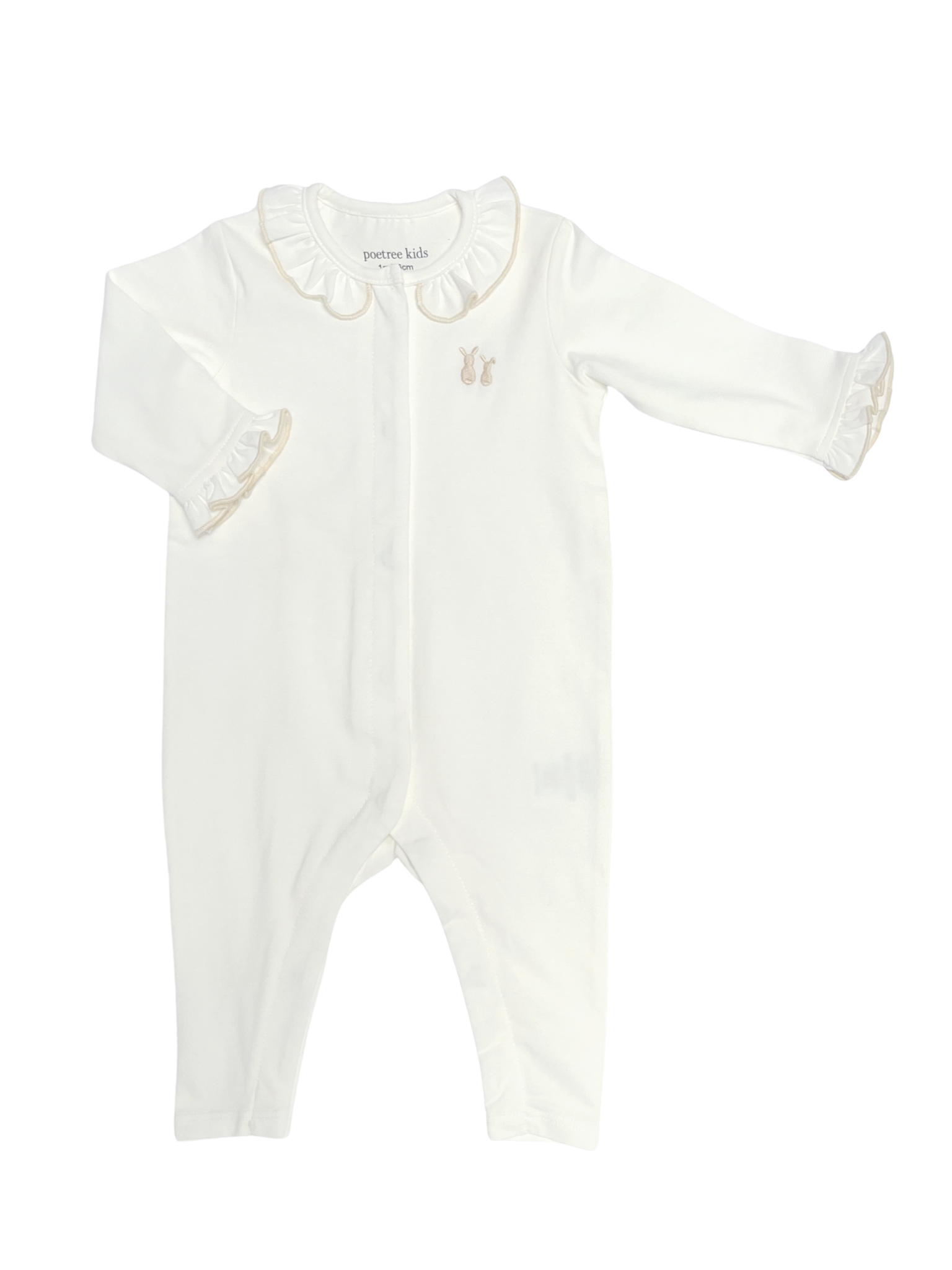 The baby suit is wonderfully soft and has super cute ruffles at the collar and cuffs.