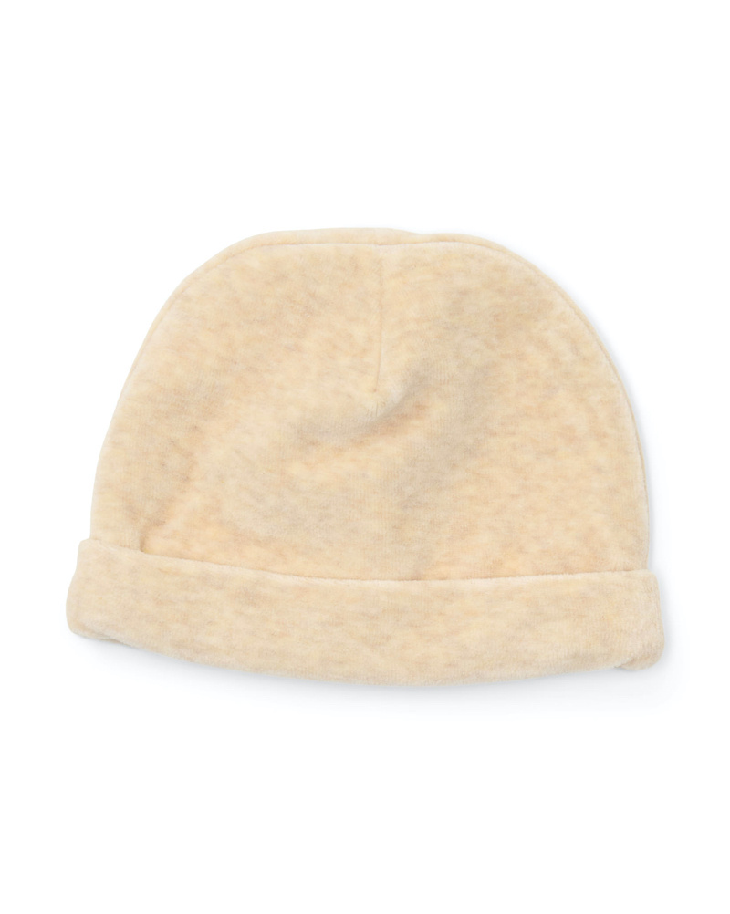Keep your little one's head warm and stylish with our Velor Baby Hat Sand. This cute hat, made of luxurious velvet in the soothing Sand color, adds a touch of elegance to any outfit.