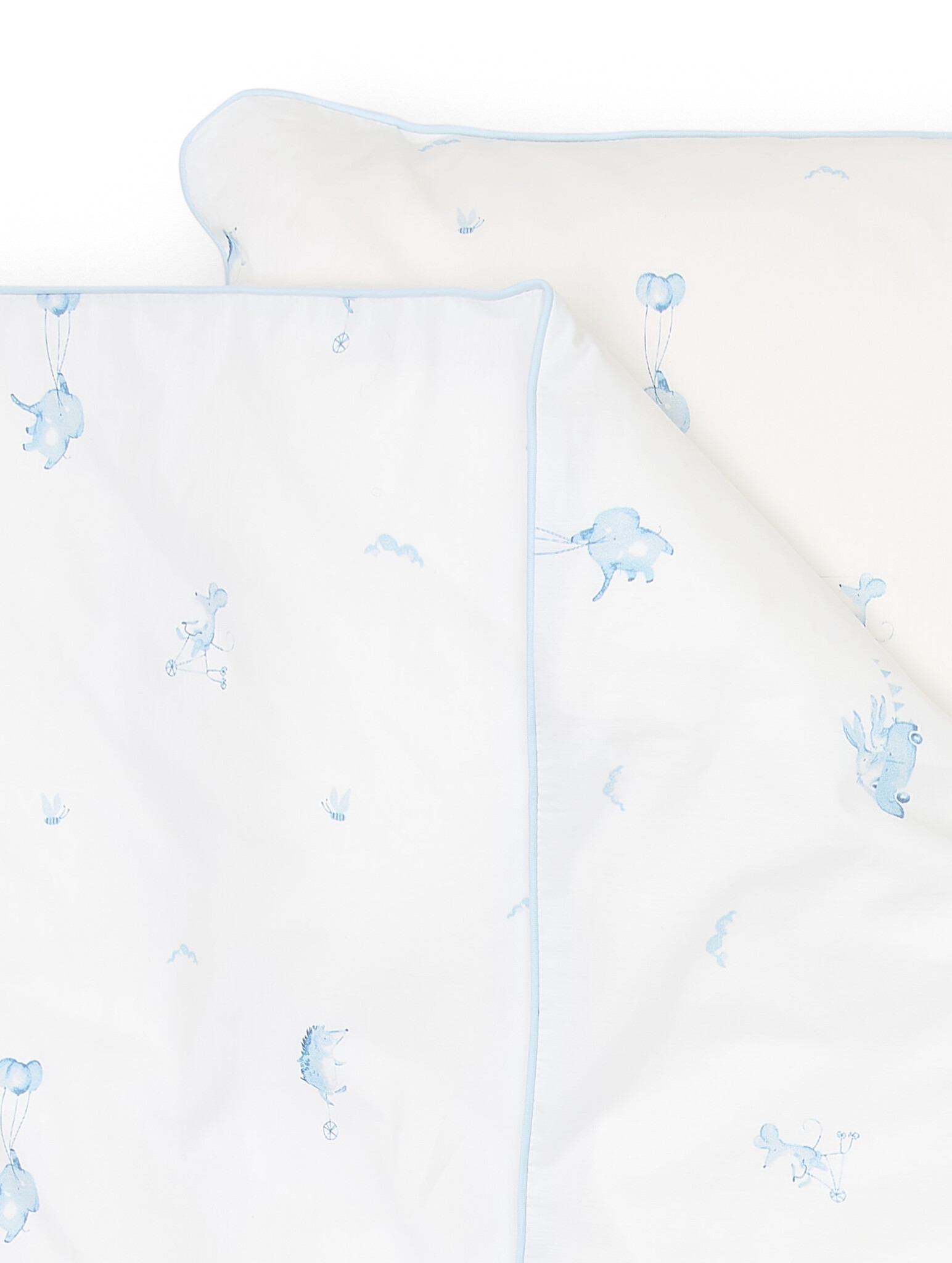 Laissez votre petit s’endormir paisiblement sous cette housse de couette avec taie d’oreiller en 100% coton, ornée du motif ludique Blue Dreams. La housse de couette douce est finie avec un subtil passepoil bleu.