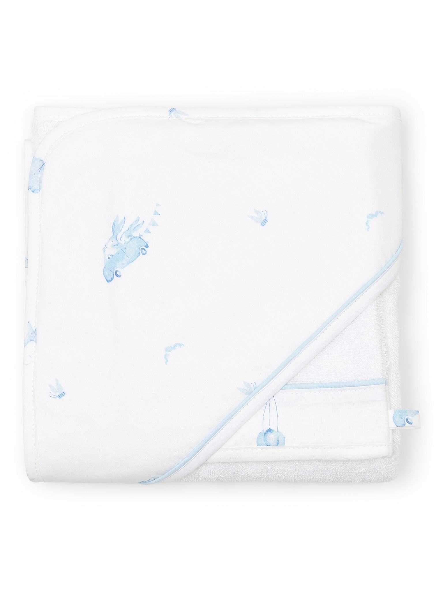 Deze badcape met bijpassend washandje uit de Blue Dreams collectie is gemaakt van dikke, zachte badstof die goed absorbeert en comfortabel is voor de gevoelige huid van je baby.