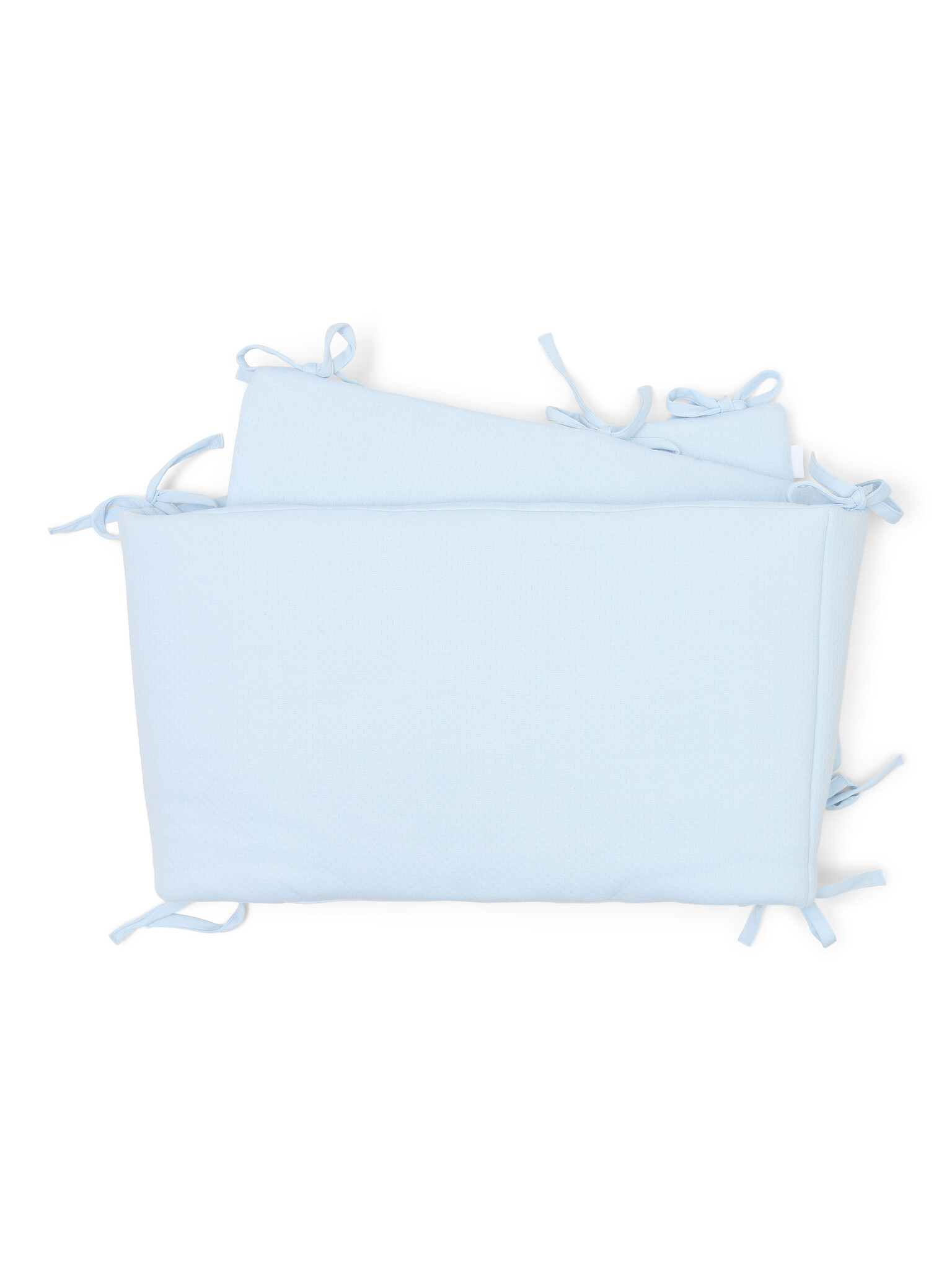Deze zachte jersey bedomrander (bedbeschermer) zorgt ervoor dat je kindje zijn of haar hoofd niet stoot tijdens het slapen. Ook voorkomt het dat de armpjes door de spijlen van het bedje kunnen steken.